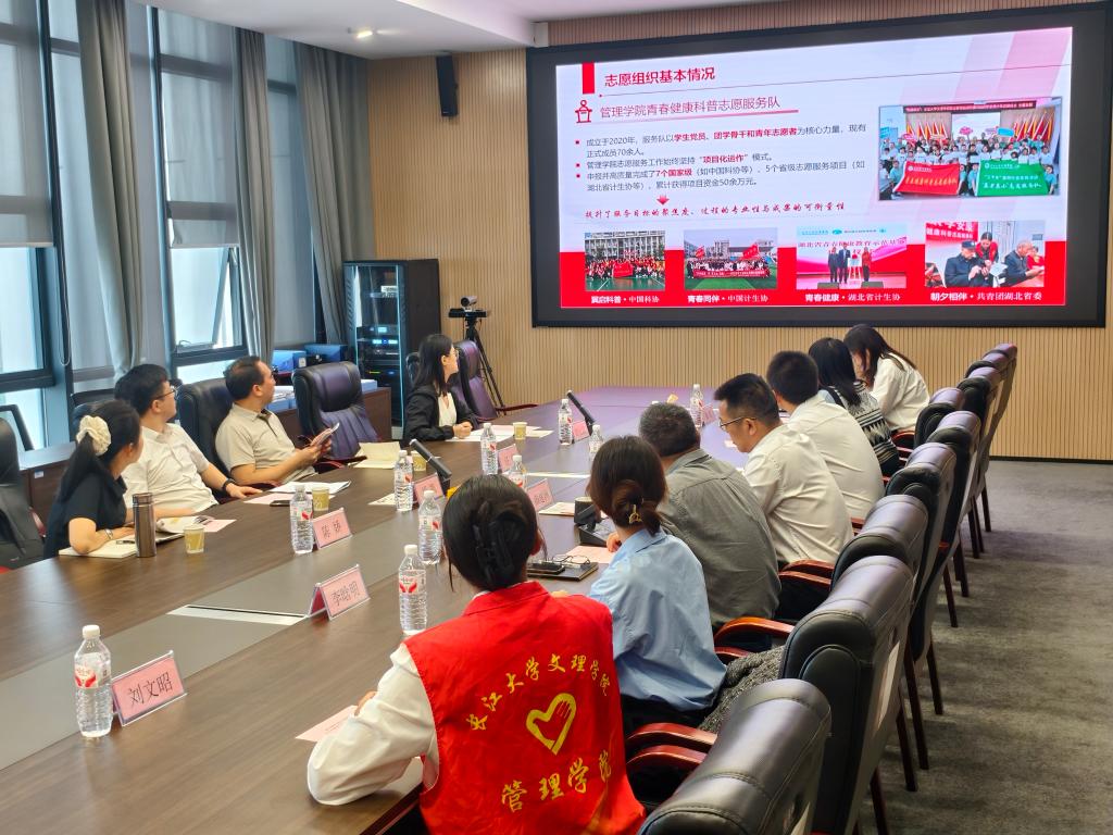 9月28日上午,荆州市委社会工作部副部长周凯率队赴威客电竞,专题调研“益老益小”志愿服务项目实施情况。荆州市委社会工作部四级调研员任实、三级主任科员陈娇随同调研。校党委书记颜建洲、团委书记陈海波陪同调研,管理学院院长姚毅、党总支书记胡沿林及项目团队主要负责老师参加座谈。
