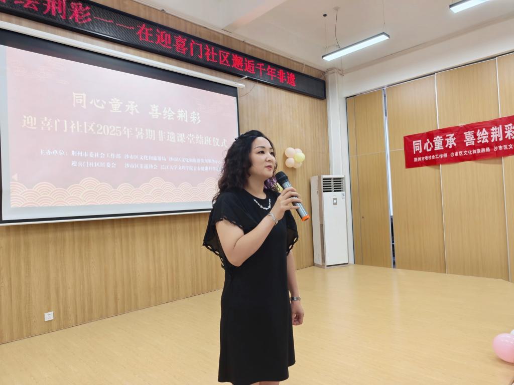 本网讯(通讯员 邓易)2025年8月8日,迎喜门社区活动室里笑语盈盈,为期近一个月的“同心童承,喜绘荆彩”暑期非遗学堂在此画上圆满句号。染漆的斑斓、泥塑的憨态、古琴的余韵、印泥的朱砂红、纸鸢的灵动,还有拓印贺卡上耀眼的五角星……共同编织成这个夏天最动人的文化锦缎。