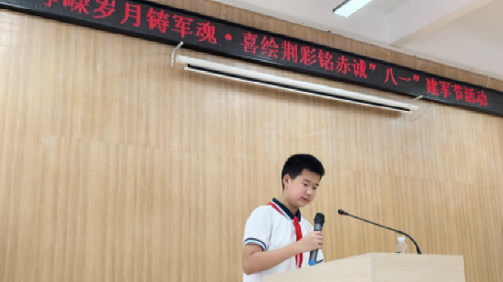 在“致敬退伍军人”环节,孩子们将亲手制作的贺卡送到老兵手中,青年志愿者也为他们送上寓意温暖的“暖心杯”。退伍军人代表刘登烂同志讲述了自己在军营中的点滴,分享忠诚与担当的深刻含义,令在场所有人感受到岁月静好背后的坚守与奉献。沙市十一中学的徐李果小朋友用纯真的话语,表达了对军人的崇敬与感谢,童言稚语,格外暖心。