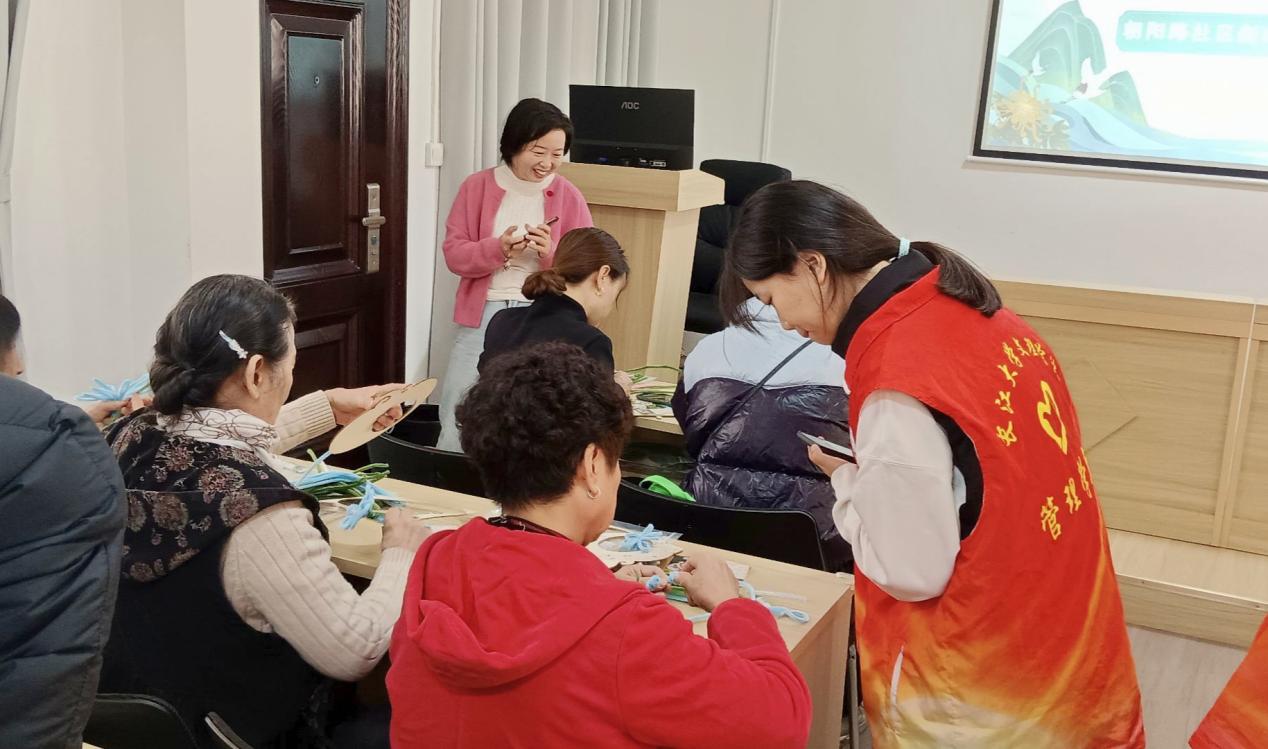 分组教学指导,定格美好瞬间。演讲结束后,志愿者们分成四个组,每组聚焦一种花朵样式,手把手指导老人完成手工制作。老人们在学习过程中充分体验手工乐趣,为晚年生活增添别样色彩。活动尾声,志愿者引导完成作品的老人们拍照留念,并为大家发放相应奖励。