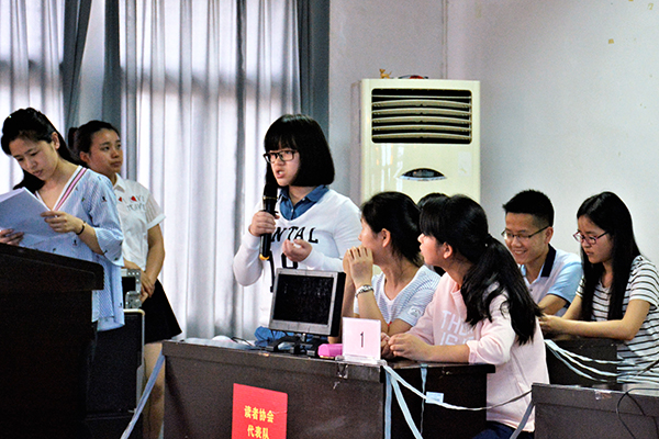 本网讯 (见习记者 鲁洋行) 5月18日,在城中校区,第十一届“泮池五月风”科技文化节之寻找阅读达人活动收官。我们图书馆副馆长让华和近百名学生共同观摩比赛。