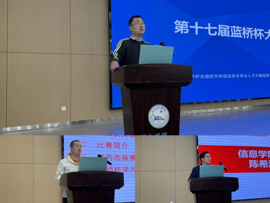 本网讯(通讯员 姚泰峻/文 蔡祎凡 张震 邹静芸/摄)10月15日下午,学院在学术报告厅B-112召开第十七届“蓝桥杯”大赛动员大会。学院常务副院长陈希湘、副院长呙明辉出席,计算机专业教研室主任熊守丽老师、电信专业朱嵘涛老师,2024级计科电信专业全体学生及2025级新生班长、学委参加活动。本次会议由学院学生会综合办公室黄淑慧同学主持。