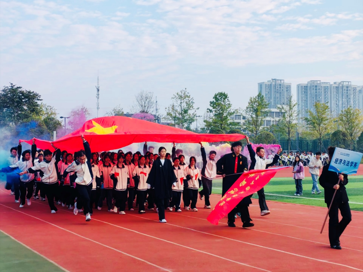 10月24日上午八点,运动会开幕式准时开启。经法系鲜花方阵与运动员方阵迈着整齐有力的步伐依次入场,“经天纬地,法安天下,英姿飒爽,不负韶华”的嘹亮口号响彻操场,成员们热情洋溢的笑容与昂扬的姿态,生动诠释了经法学子团结向上、锐意进取的精神风貌。