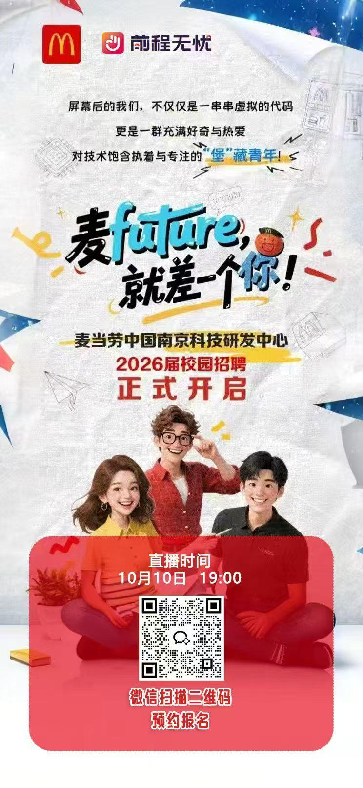 前程无忧-麦当劳中国南京科技研发中心2026届校园招聘正式开启