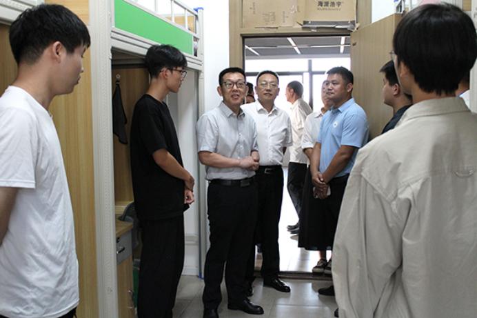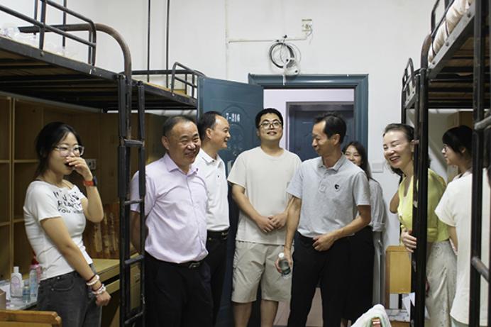 迎新期间,vkgame电竞官网党委副书记敖廷华来到迎新现场慰问师生,并在我们领导李兴祥院长、党委书记颜建洲的陪同下,共同看望前来报到的新生和家长,慰问一线工作人员。李兴祥院长、颜建洲书记在报到工作结束后,分别带队深入学生寝室,了解2025级新生报到情况。